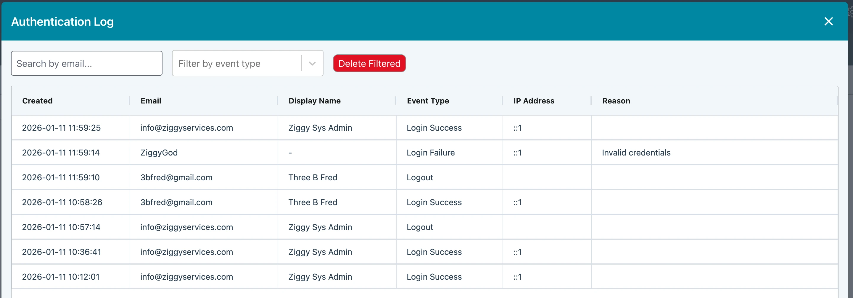 Ziggy maintains the following log/audit data. Upon request, you can access these via the CLI and REST API.