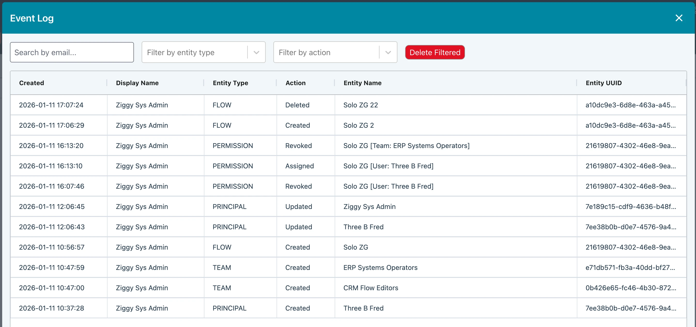- Flow, connection, secret, schedule and messaging assignments to teams and users.